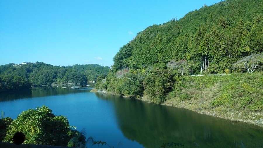 市街地を抜けると徐々に標高を上げ、ダムの周囲に沿って道が整備されている。そのため車窓からの眺めもよく、意外と長く景色を楽しむことができた。車窓からだったのでダムと湖が続いている様子は確認できなかった。