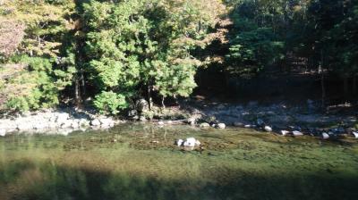 名張駅から路線バスで30分くらいのところにあるスポット。そそり立つ岩場の間を縫うように道路が続いており、道に沿って渓谷が流れている。紅葉がきれいなほか、柱状節理の岩も見ごたえがあり、自然環境豊かな場所だと感じた。