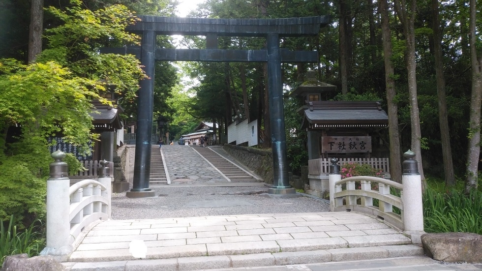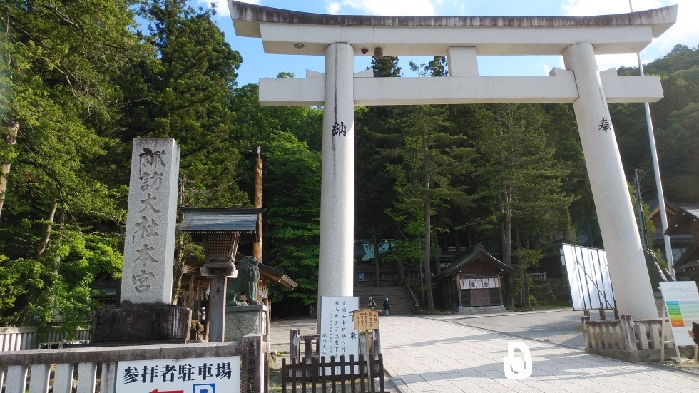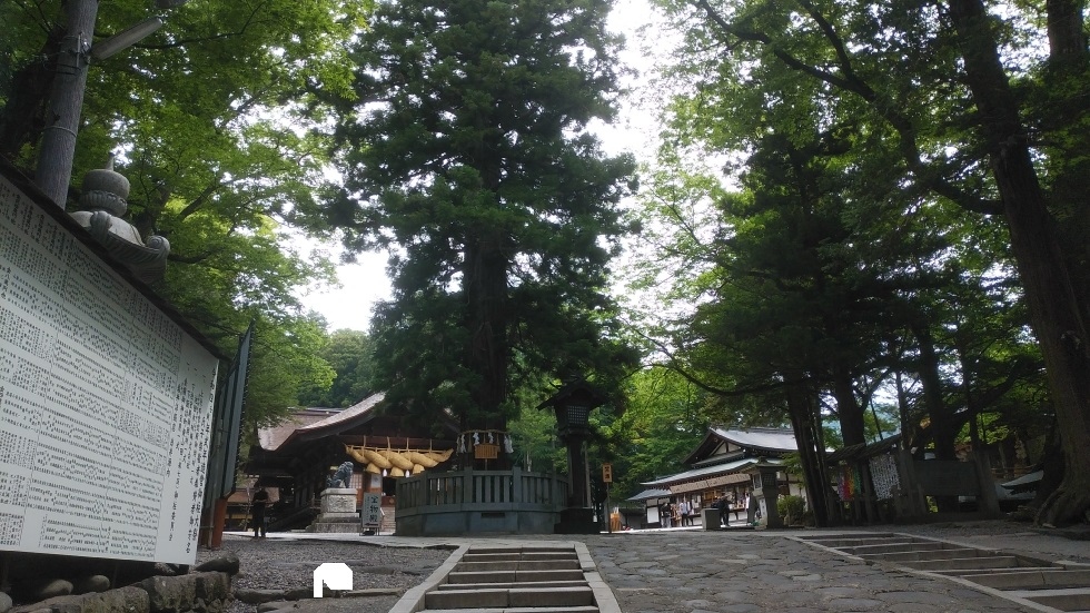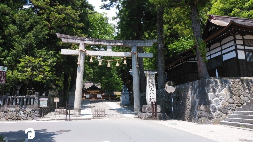 下諏訪駅から徒歩12分くらいのところにある神社。創建年代は不詳だが、1500年から2000年の歴史があるとされ、日本最古の神社とされる。