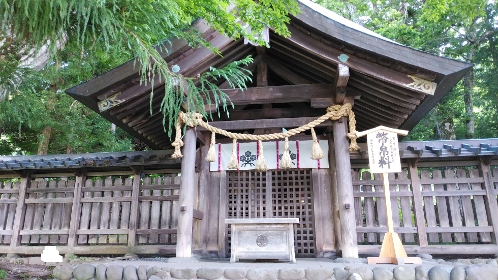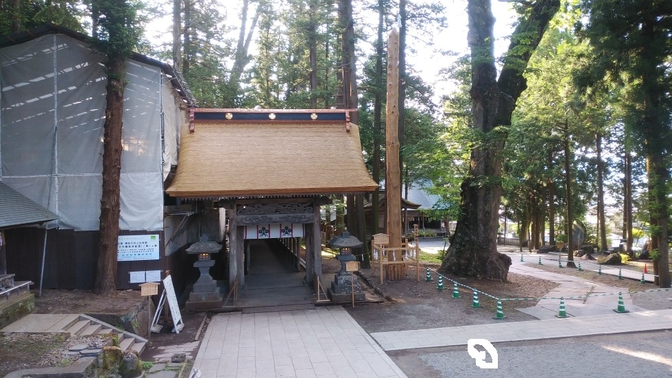 こちらも御柱が建てられ、厳かな雰囲気も感じられた。諏訪大社四宮の中では最も参拝客が多くみられた。- 旅行時期