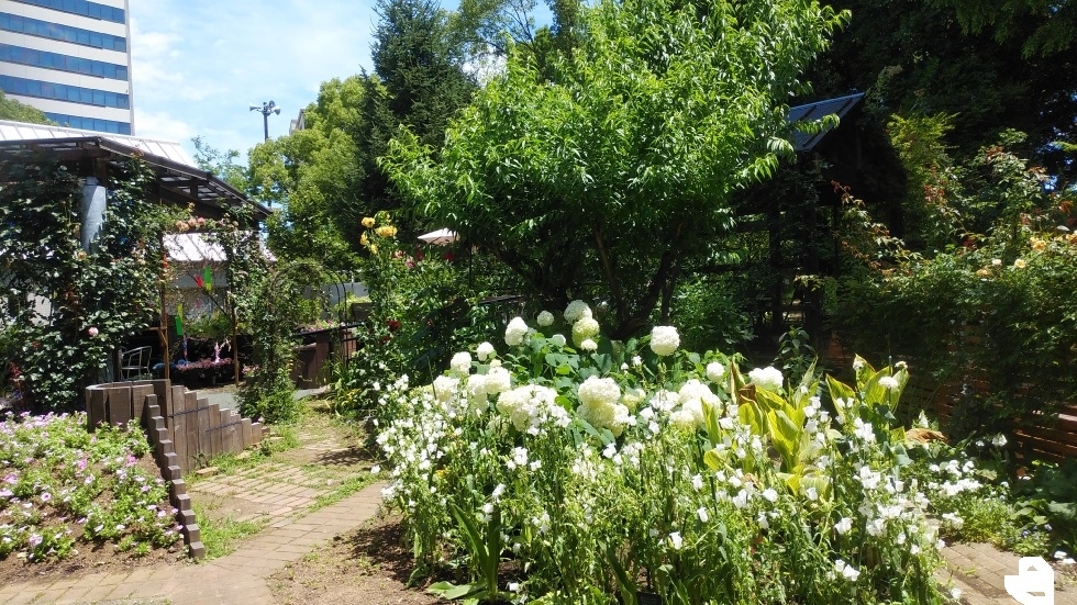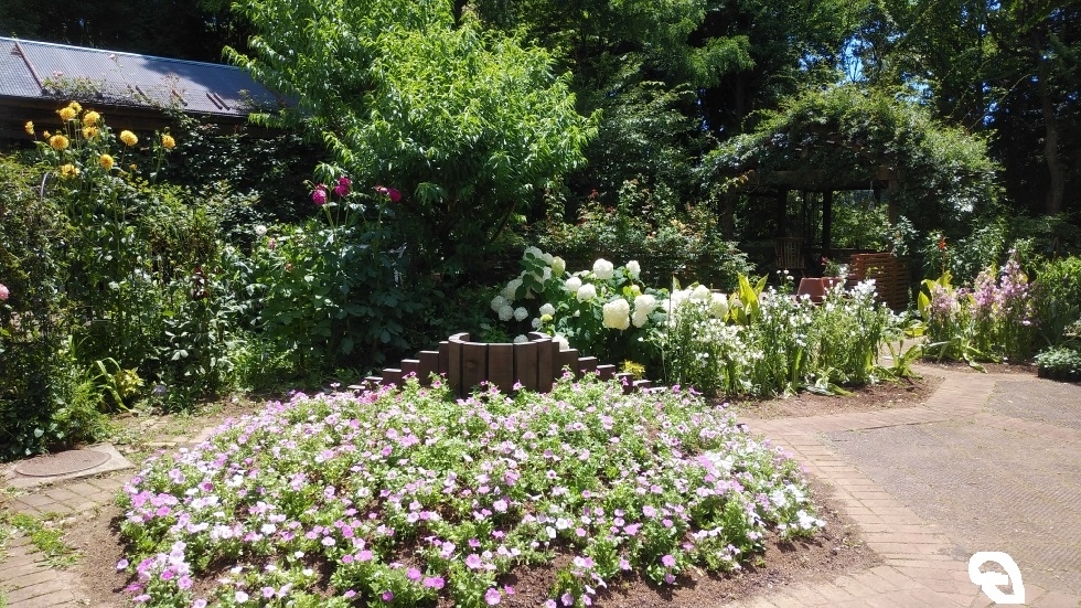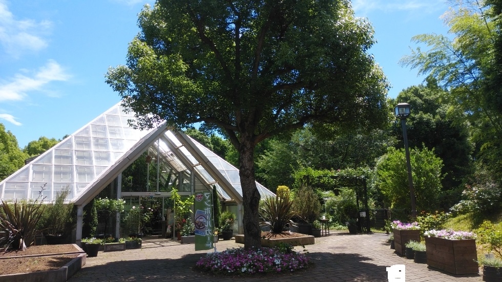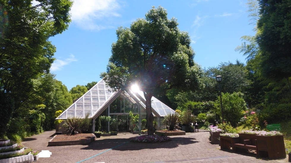 多摩センター駅から徒歩10分くらいのところにある施設。小規模ながら温室と屋外には庭園風のレイアウトに植物が生い茂っている。6月下旬の時期はアジサイの花など季節の花を楽しむことができた。