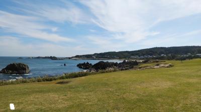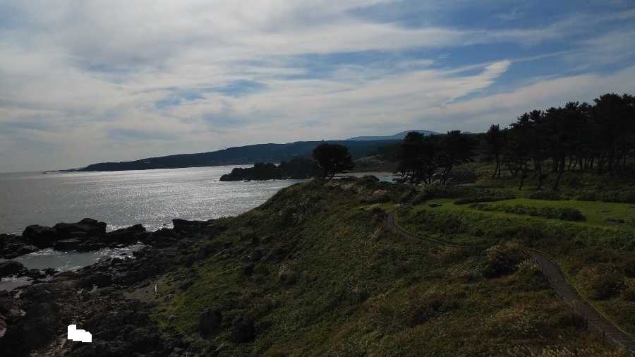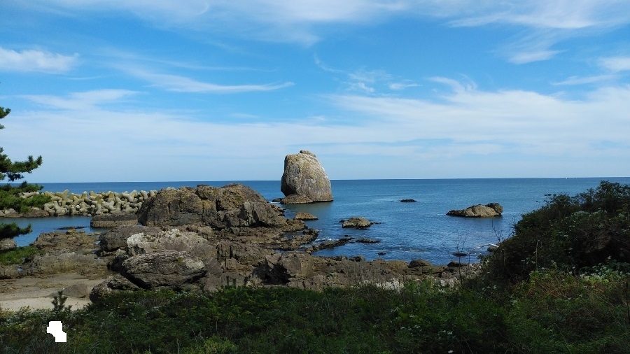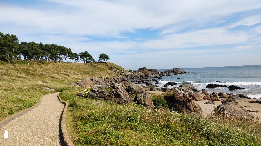 陸奥白浜駅から徒歩40分くらいのところにあるスポット。葦毛崎展望台からの遊歩道を進んでいくと最初に経由する場所である。海浜植物と岩場が混在する風景で、夏のシーズンは様々な花が咲き誇るようだ。この辺りは遊歩道もしっかりと整備されており、歩きやすかった。