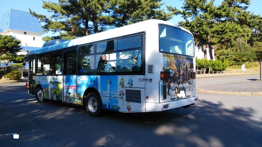 鮫駅から種差海岸駅までの区間にある観光スポットを経由する周遊バス。季節により運行頻度が異なるが、春から秋にかけてはおおむね1時間に1本、7往復とそれなりに使い勝手の良い運行となっていた。料金も100円と安すぎる設定。