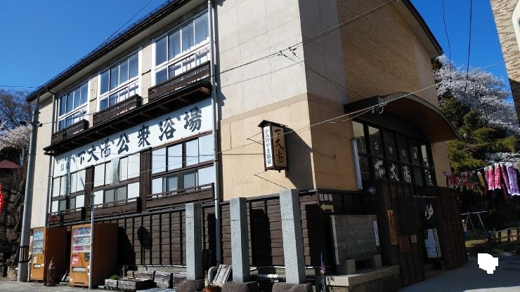 かみのやま温泉駅から徒歩12分くらいのところにある共同浴場。江戸時代1624年から続く歴史ある施設。