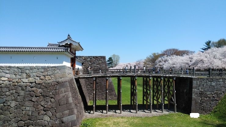 山形駅から徒歩10分くらいのところにある公園。周囲はお堀がめぐらせてあり、いかにも城跡だとわかる。敷地内は広めで本丸は無いが、門などが復元されていた。石垣や井戸なども見どころで、江戸後期記録があるに崩落した石垣も見ることができた。