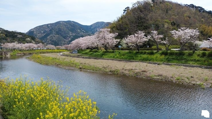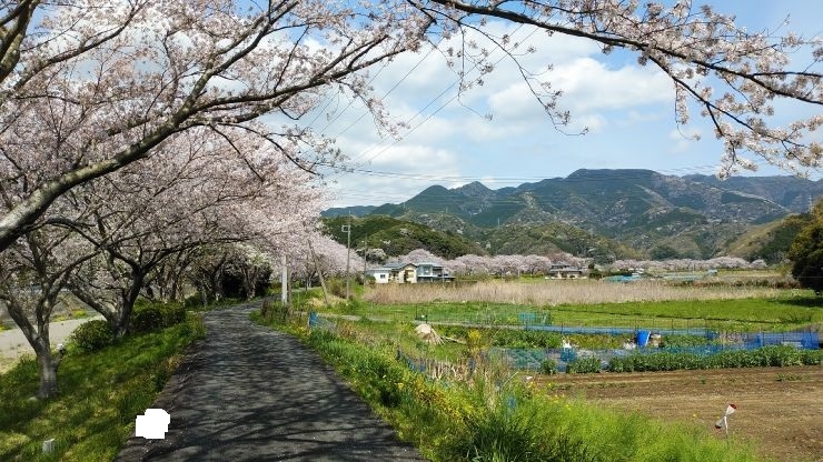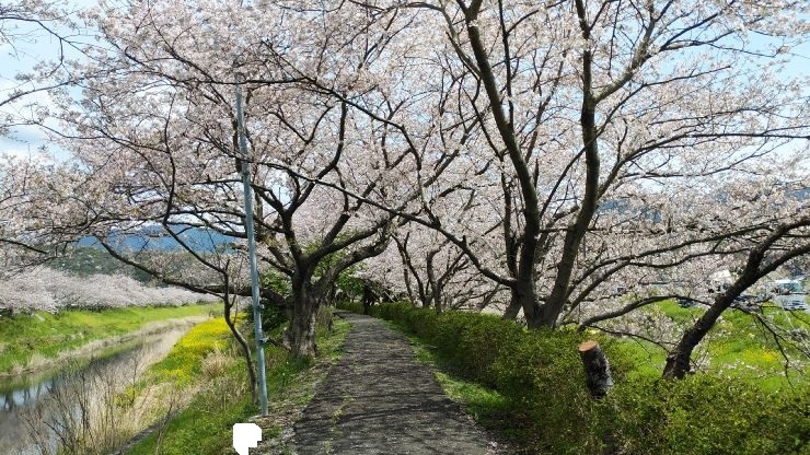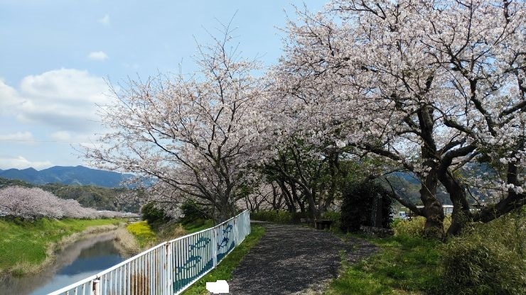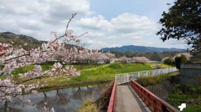 伊豆半島松崎町を流れる那賀川の河口から大沢温泉まで約6キロにわたって続く桜並木の道。河口近くの宮の前橋交差点から建久寺橋交差点までの約2.5キロを歩いた。