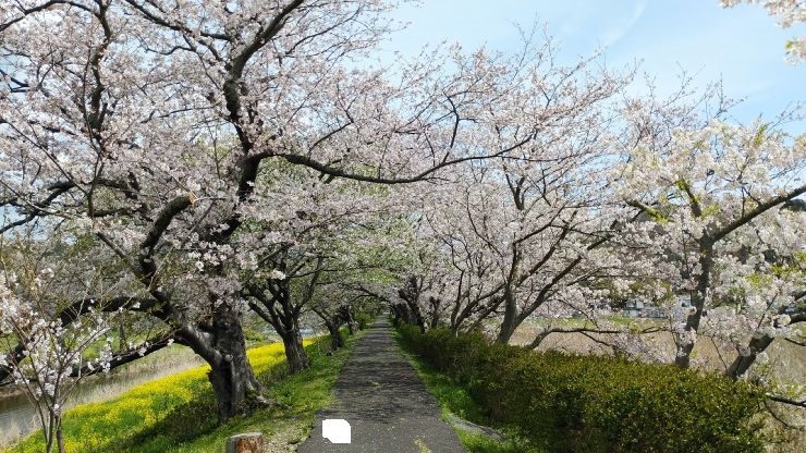 4月2日は散りはじめの状況。花のボリュームはやや落ちていたがそれでも見ごたえはあった。川に沿ってどこまでも続くように見える桜並木は圧巻。