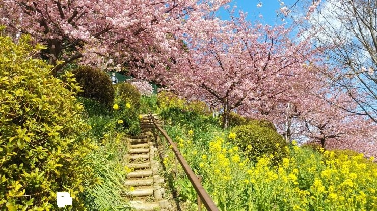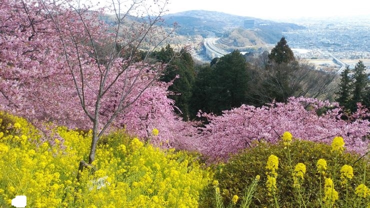 毎年2月から3月にかけて松田町西平畑公園で催されるイベント。約360本の河津桜が公園の斜面をピンク色に染める。菜の花も同時に見ごろを迎えているので、色彩が豊かな風景に感動した。