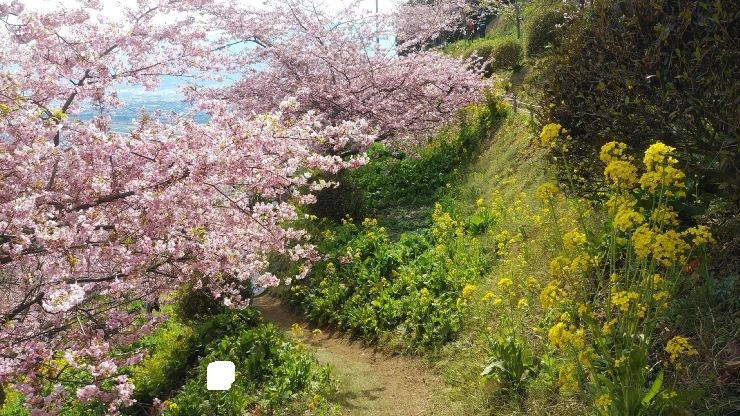山の斜面に河津桜と菜の花が咲き乱れる。特に菜の花と河津桜の組み合わせを楽しむにはまつだ桜まつり会場よりもこちらの方がボリュームがあった。