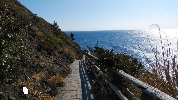 ここから田牛方面に向かって散策路が整備されており、ハイキングも可能。ただし、バス利用の場合、本数の少ない田牛側から弓ヶ浜に向かう方がスケジュールは立てやすいと感じた。- 旅行時期