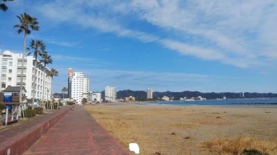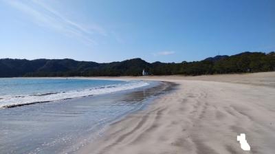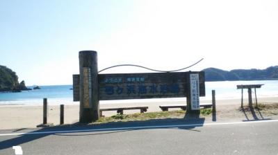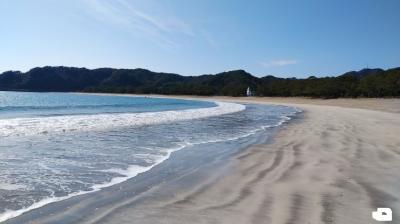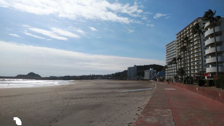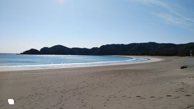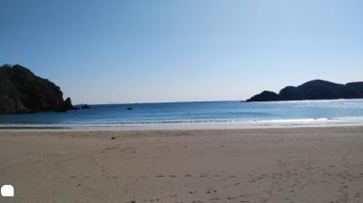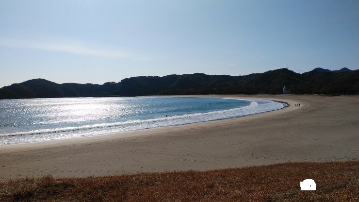 なだらから弓状の弧を描く海岸線の砂浜が長く続いておりなかなかの絶景。知名度のある海水浴場のためか、冬のシーズンながら時間帯によっては比較的多くの人が散策を楽しんでいた。