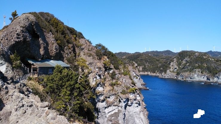 海岸をめぐる遊覧船がある石廊崎港とは場所が異なるほか、標高もこちらの方が高い。