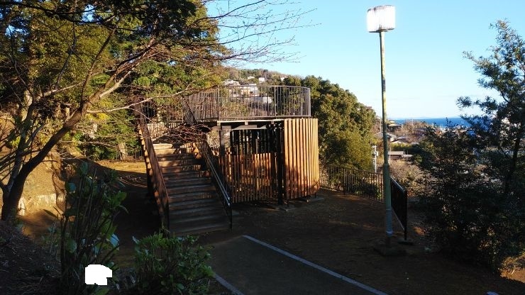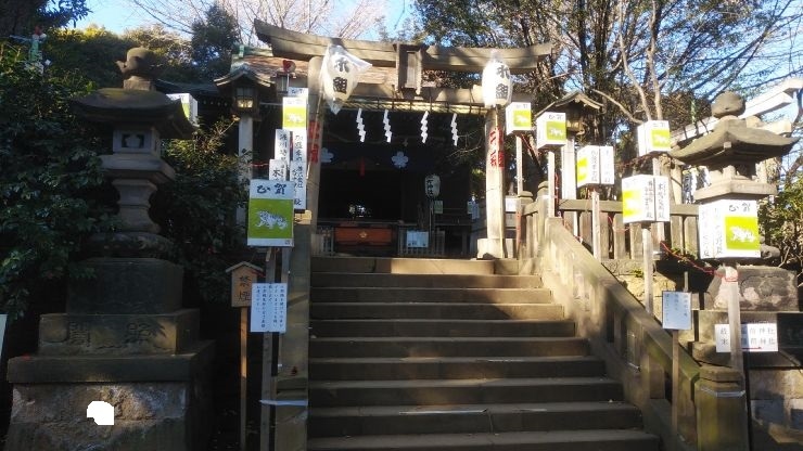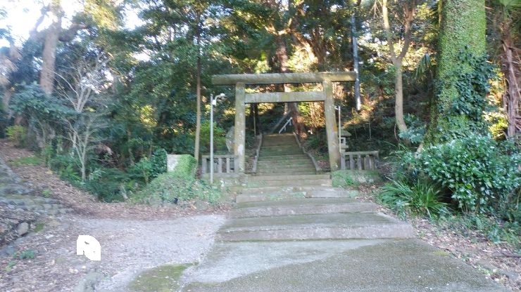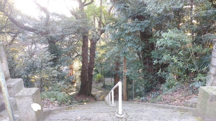伊東公園に隣接しており、鳥居をくぐると本殿までは階段を登っていかなければならない。