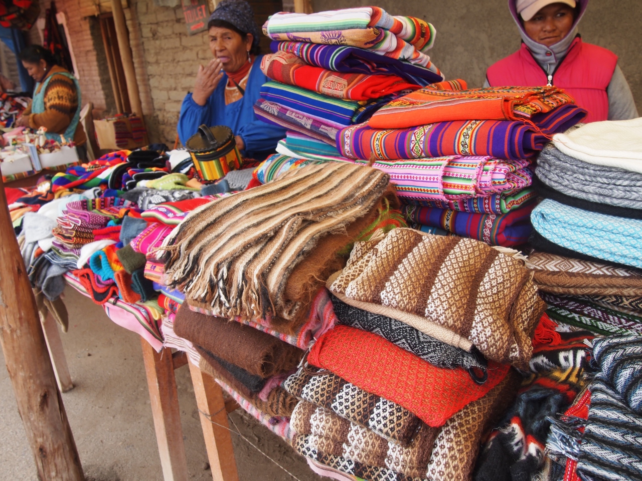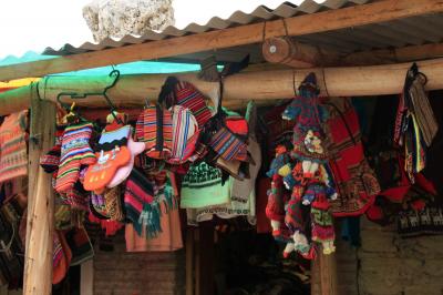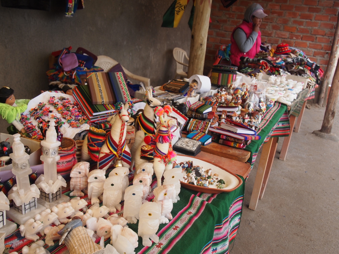 カラフルなニット小物や塩の置物、ウユニの塩などが売られています。