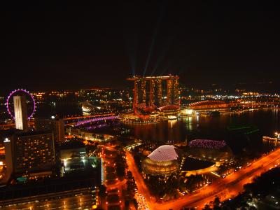 窓からマリーナベイサンズ、シンガポールフライヤーや