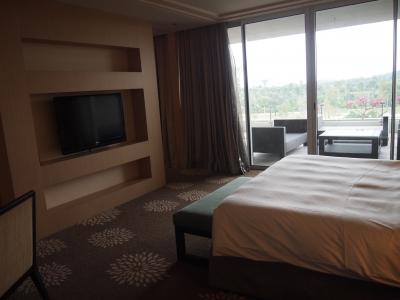 部屋はベッドも大きく、大型液晶テレビもついていて、とってもキレイで快適です。