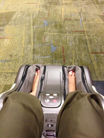 歩き疲れてむくんだままで飛行機に乗っては、さらにむくんでしまうところでしたが、ふくらはぎから足の裏まで揉みほぐしてくれるマッサージャーが無料で使えて助かりました!