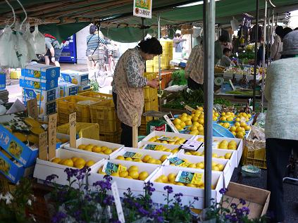この時期に旬の小夏やフルーツトマトなど、お店の人と話をながら買い物をしました。