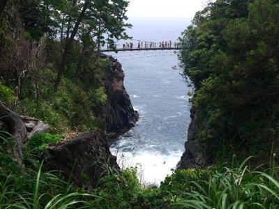 断崖絶壁や海風に揺れる「門脇のつり橋」を渡るから見下ろす迫力はスリルがありますが、とても美しいです。