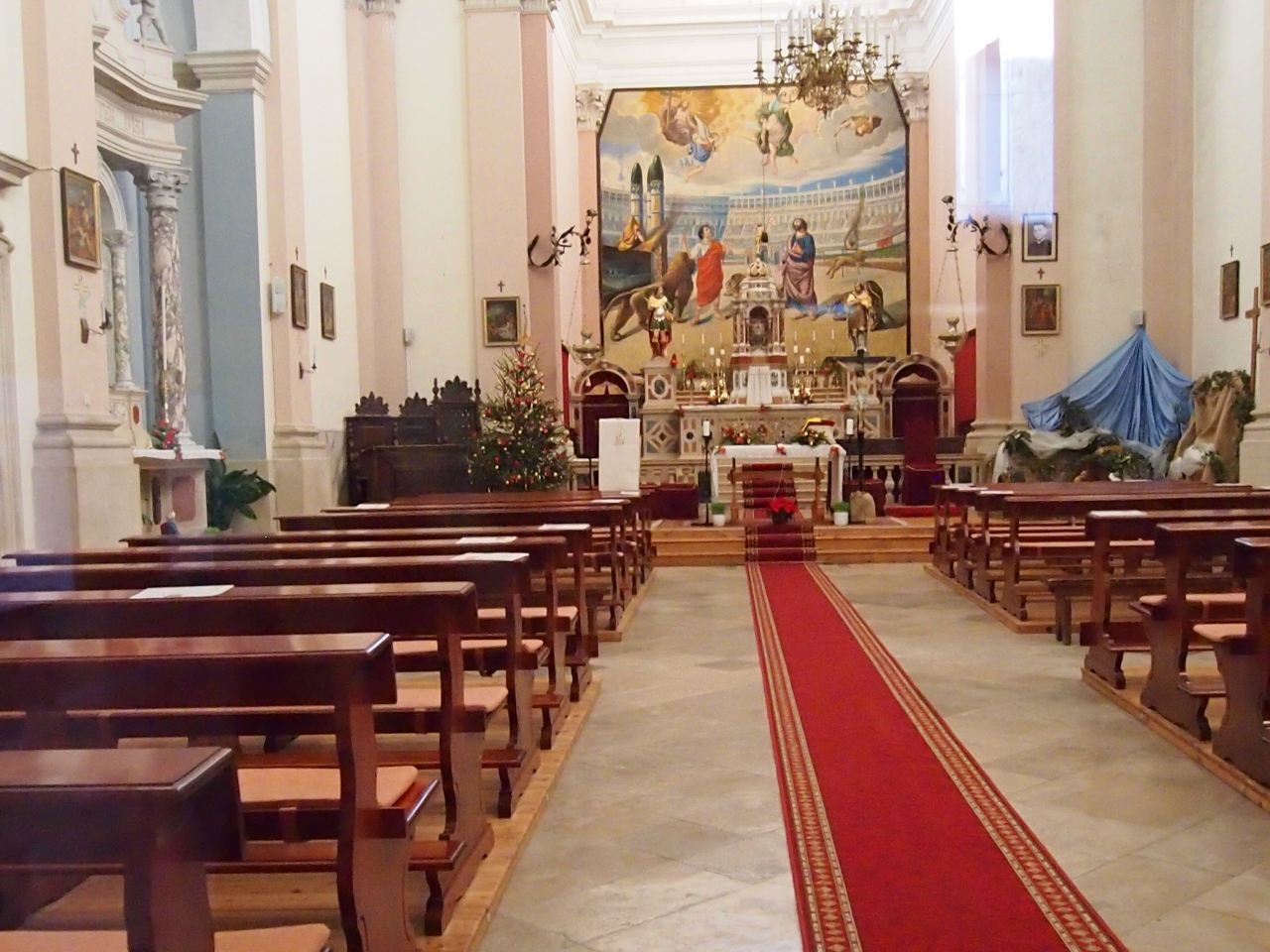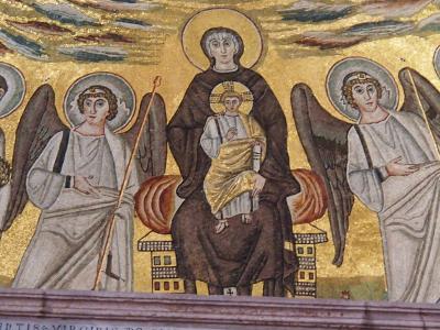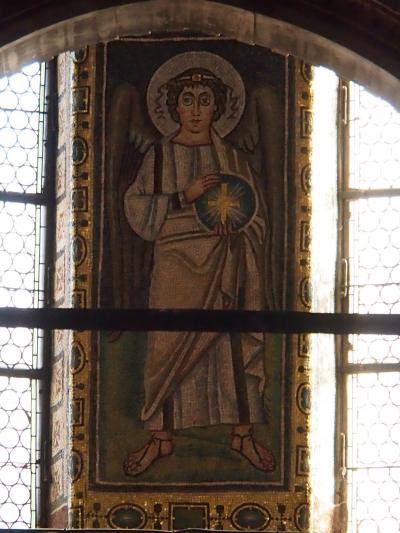 アドリア海のほとんど対岸に位置する ラヴェンナの サンヴィターレ聖堂などのモザイクと、ほぼ同時期の 保存状態の良いアプス部の キリストと12使徒、聖母マリアのモザイクは必見です。