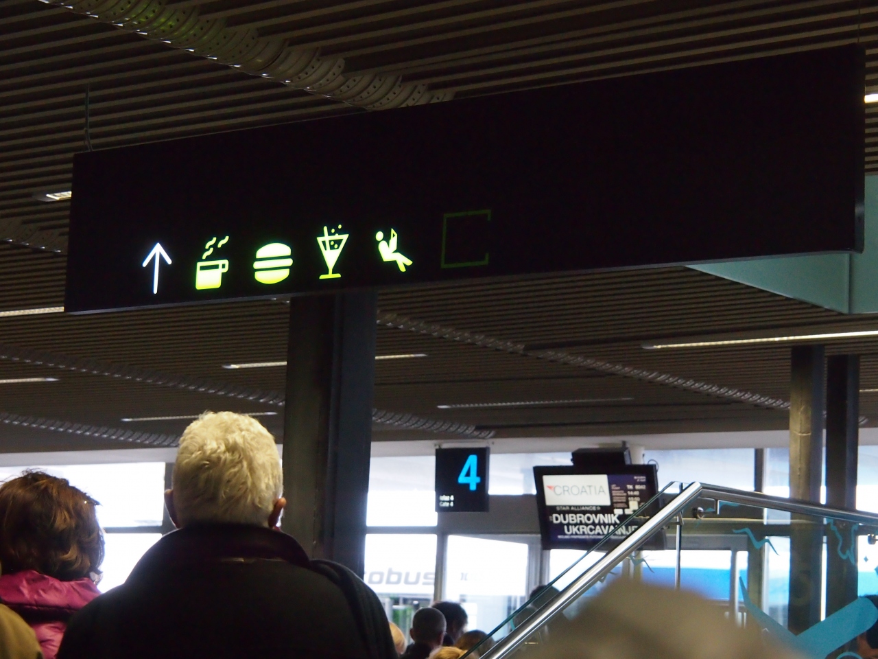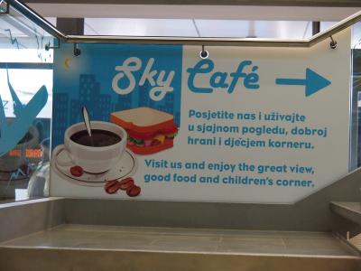 2014年の年末、クロアチア移動のときに3度利用しました。 小さな空港で 隅の方にカフェが一つ、という情報を頂き 覚悟して当初の待ち時間、4時間を過ごす覚悟でしたが 実際は飛行機のキャンセルで 8時間を過ごす羽目になりました。が 空港内には 新たにカフェが 2箇所増えていて 2階にはレストランとセルフコーナー、仮眠チェアなどもあり 何とか8時間 待機することができました。