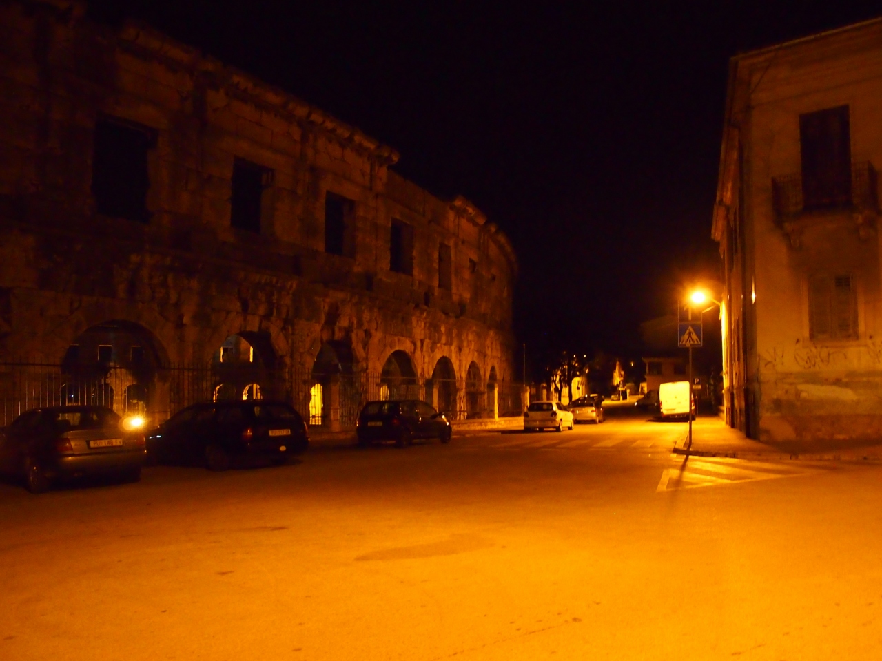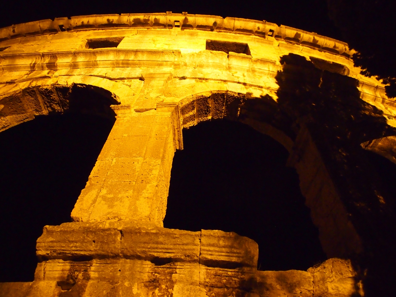 ライトアップされた アレーナは 周りの住宅に溶け込み 堂々と佇んでいました