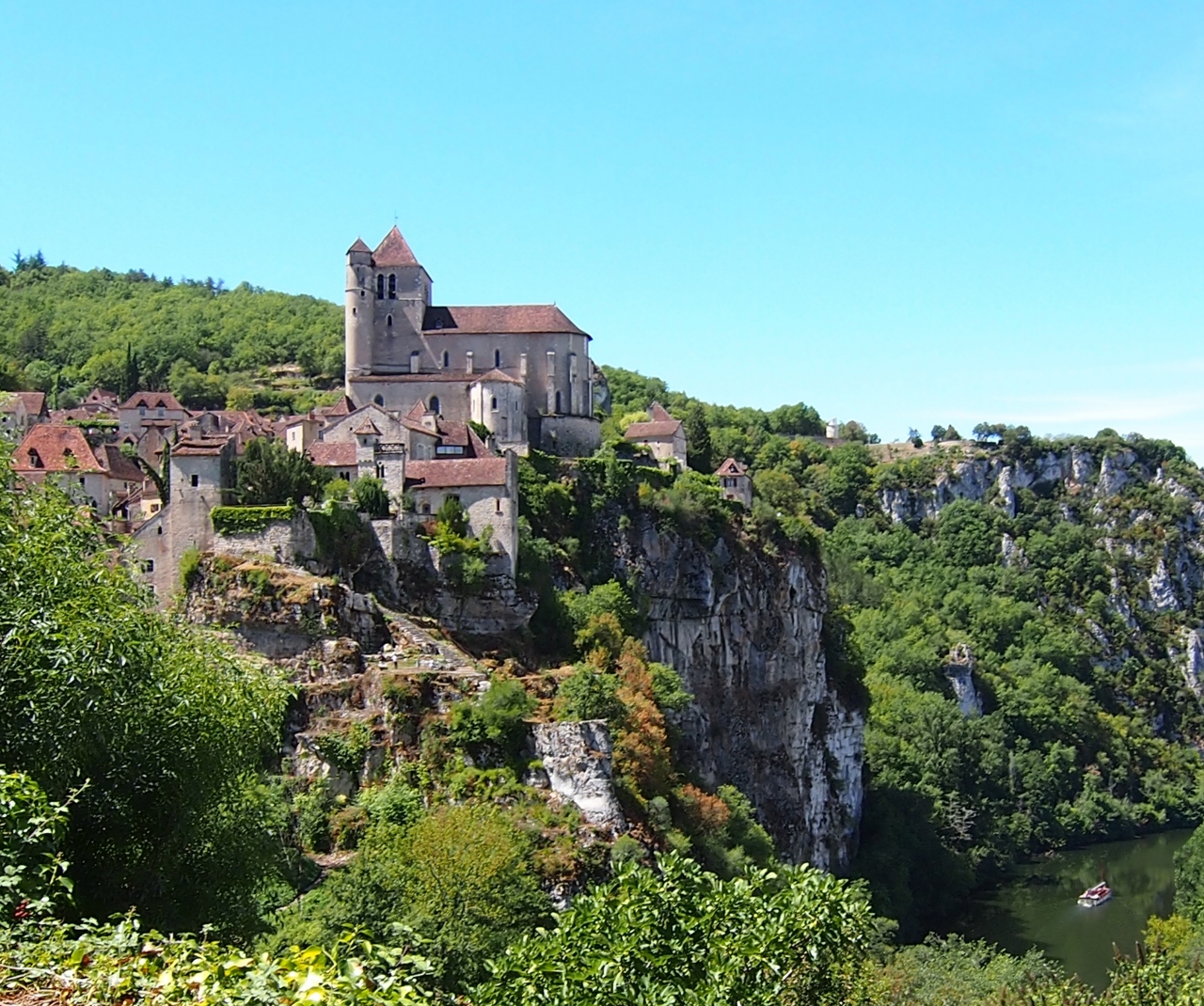サンシル教会は サンシルラポピーの村の中ほどに位置しています。 断崖に聳えるロマネスクの簡素な教会は ロット川沿いを走る バス道路からも 美しく眺めることができます。