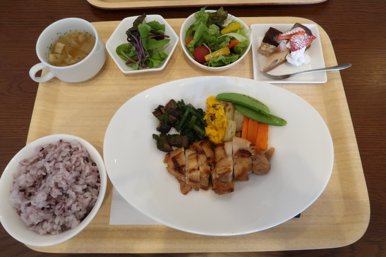 塩船観音寺につつじを見に行った際のランチ。河辺駅近くで人も少なそうな店を探して見つけたのがこちらです。前日に電話で予約しました。河辺駅南口ロータリーから歩いて7~8分で到着。名前を告げるとテーブル席に案内されました。ワンオペで店内はテーブル5席のみのゆったりした空間。パーテーションはありませんが、これだけ隣席と距離があると安心です。注文したのは、煮込みハンバーグとチキンバーベキューステーキ。ライス、パンが選べどちらにもスープ、サラダ、小鉢、デザートがセットです。