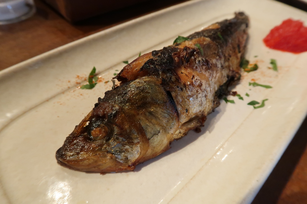 ●大羽イワシのコンフィ コンフィなので身にはしっかりとした旨味が残り、且つジューシーさも十分。頭から骨まで頂け、ふっくらした身に内蔵の苦みで複雑な味わいになりこれは旨い。