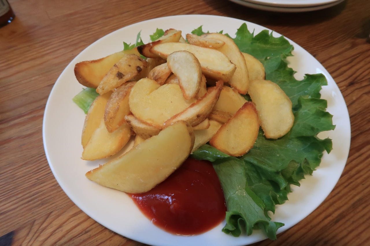 ●ポテトフライ カリッと揚がっており、一つが存在感のある大きめのポテトであるのが嬉しい。