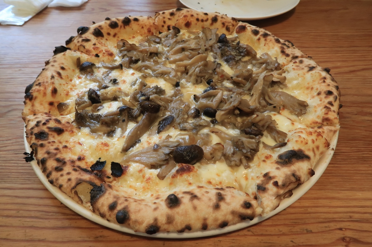 ●ラ・ビエール みなかみ産のブランド舞茸「すくよか」をを使ったピザ。きのこの香りも良く、噛むとさっくりした食感と旨味がありこれは美味しい。普通の舞茸では出ない「すくよか」ならではの味わいと思われ、ここでしか頂けないものでこちらが当りでした。