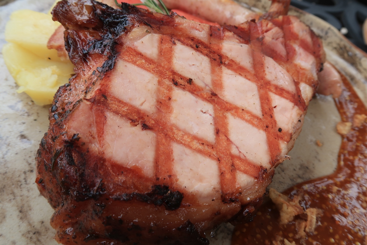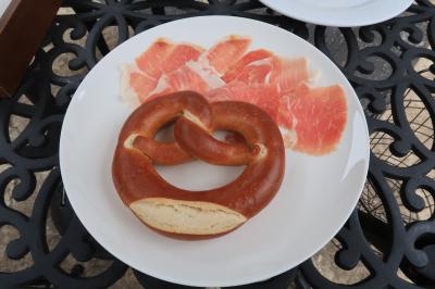 水上温泉郷旅行2日目のランチ。宿の方に送って頂き11時過ぎに到着。日曜日で混雑しておりこの時間で順番待ち1番。10分ほど待ってテラス席に案内されました。注文したのはプレッツェル&はもんみなかみとリブボーンステーキ(ポーク)セット。