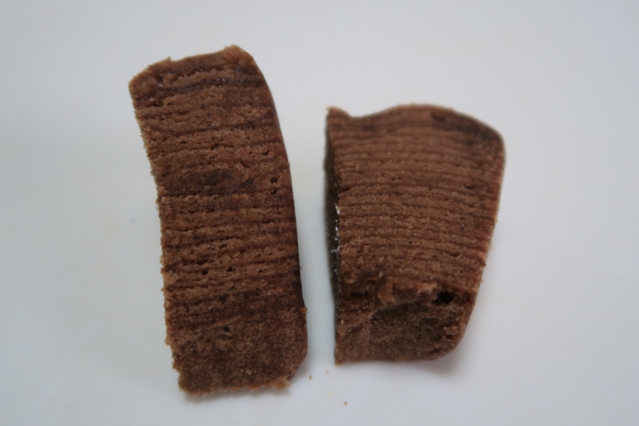 ●カットバウムショコラ ココアパウダーが練り込まれた生地で、かすかな苦みもあり味わいとしてはかなりあっさりです。甘いのが苦手な方にはいいかもしれません。