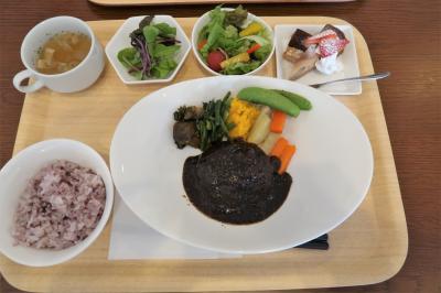 ●煮込みハンバーグ 付け合わせは茄子マリネ、ほうれん草ソテー、南瓜サラダ、スナップエンドウ、じゃがいも、人参。パテは高さもあり、しっとりしており肉の旨味も十分。濃厚なデミグラスソースも味わい深く、まずまずの味わいでした。