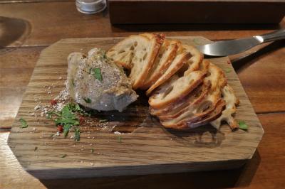 ●鯖のリエット 一夜干しの鯖を使っているリエット。凝縮された鯖の旨味、塩味でワインが欲しくなる味。ただ鯖缶でもできそうで、味にもう一工夫欲しい。