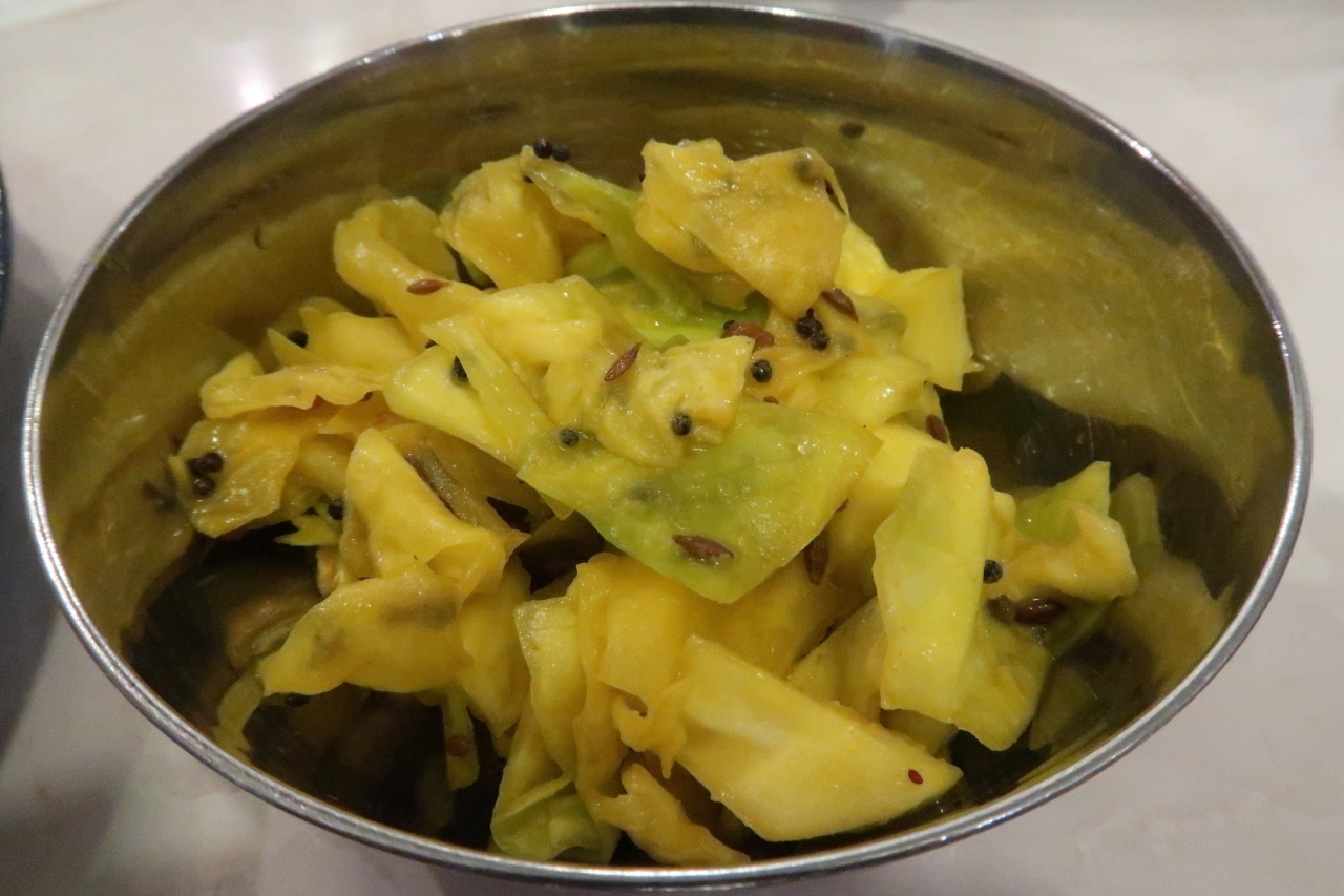 ●キャベツアチャール 辛味、塩味が少ないアチャールで、箸休めにはいい副菜でした。