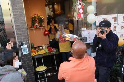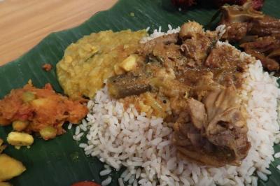 以前伺ったスリマンガラムのHPを見ていると1月3日で1周年になり特別メニューが頂けるという告知。何やら楽しそうという事でかなり早く10時過ぎに到着するも、すでに大勢いの方が並んでおられてその人気に驚き!ほどなく儀式が始まりお香(?)の煙を被り、菊の花弁と米を投げたり並んでいる客にシェフ自らビンディー(ティッカ?)付けて周ったりで、イベントに参加してしている感じもあって厳かな気持ちもありつつ楽しめました。