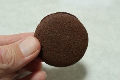●クリームビスキュイ 封を開けるとチョコのいい香り。サクとしたクッキーはくちどけも良く、甘さ控えめ。中のクリームには細かなラムレーズンが入り、食感と甘酸っぱさがいいアクセントになっていました。