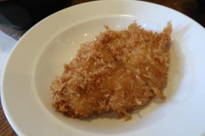 ●ヒレカツ 歯切れも良くやわらか。少量のソースを掛けると、味が引き締まり豚肉の旨味が際立ちます。