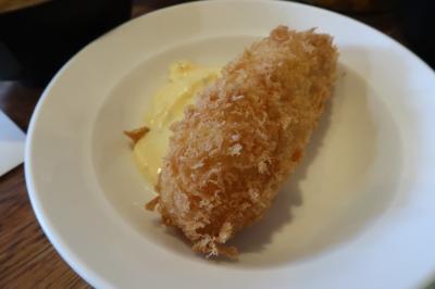 ●カニクリームコロッケ ベシャメルソースにカニの身がぎっしり。舌ざわりも滑らかでとろけます。
