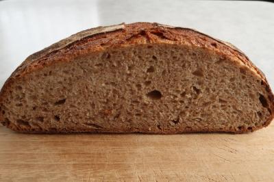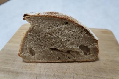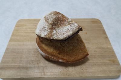●ムール1/2 持つとじっしりと重みを感じるパン。皮はしっかり硬く小麦にいい香り。クラムはしっかりとした酸味があり、もっちりとした噛み応え。少々武骨な味わいに感じるのは、石臼挽きの粉を使っているからでしょうか。じっくり噛むと酸味と共に穀物の風味、甘みなど非常に味わい深く、これは美味しく好みのパンでした。