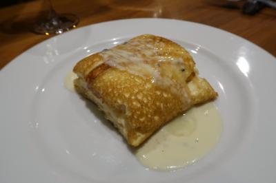 ●トリュフのふわふわスフレオムレツ 文字通りフワフワのオムレツは口どけが心地いい。癖のないオムレツに蜂蜜の甘さとゴルゴンゾーラチーズの塩味の組み合わせが絶妙。