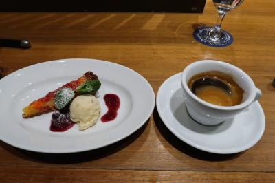 ●デザート ブラッドオレンジのタルト、塩キャラメルのアイスとコーヒー。デザートも手抜きないなぁ。