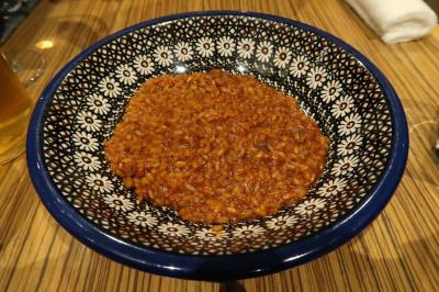 ●エビリゾ500% 海老の出汁を1/5まで煮詰めたリゾット。すごくいい香りが漂い、米一粒一粒が濃厚な海老出汁を吸い旨い事!。塩味も丁度良く、フレッシュなローズマリーの風味で味に広がりがありこれは絶品でした。