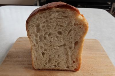 ●食パン 香りがものすごく良く若干酸味も感じられます。まずはそのまま頂くと、皮は食パンにしてはしっかりした食感で小麦の風味があり、クラムは粘りを感じるほどのもっちもち。軽くトーストすると、香ばしさと今までに感じた事のないような芳醇な香りが漂い、若干弱くなるもののクラムのもちもち感も十分。小麦の旨味があり、正直こんな美味しい食パンがあるのかと驚きました。