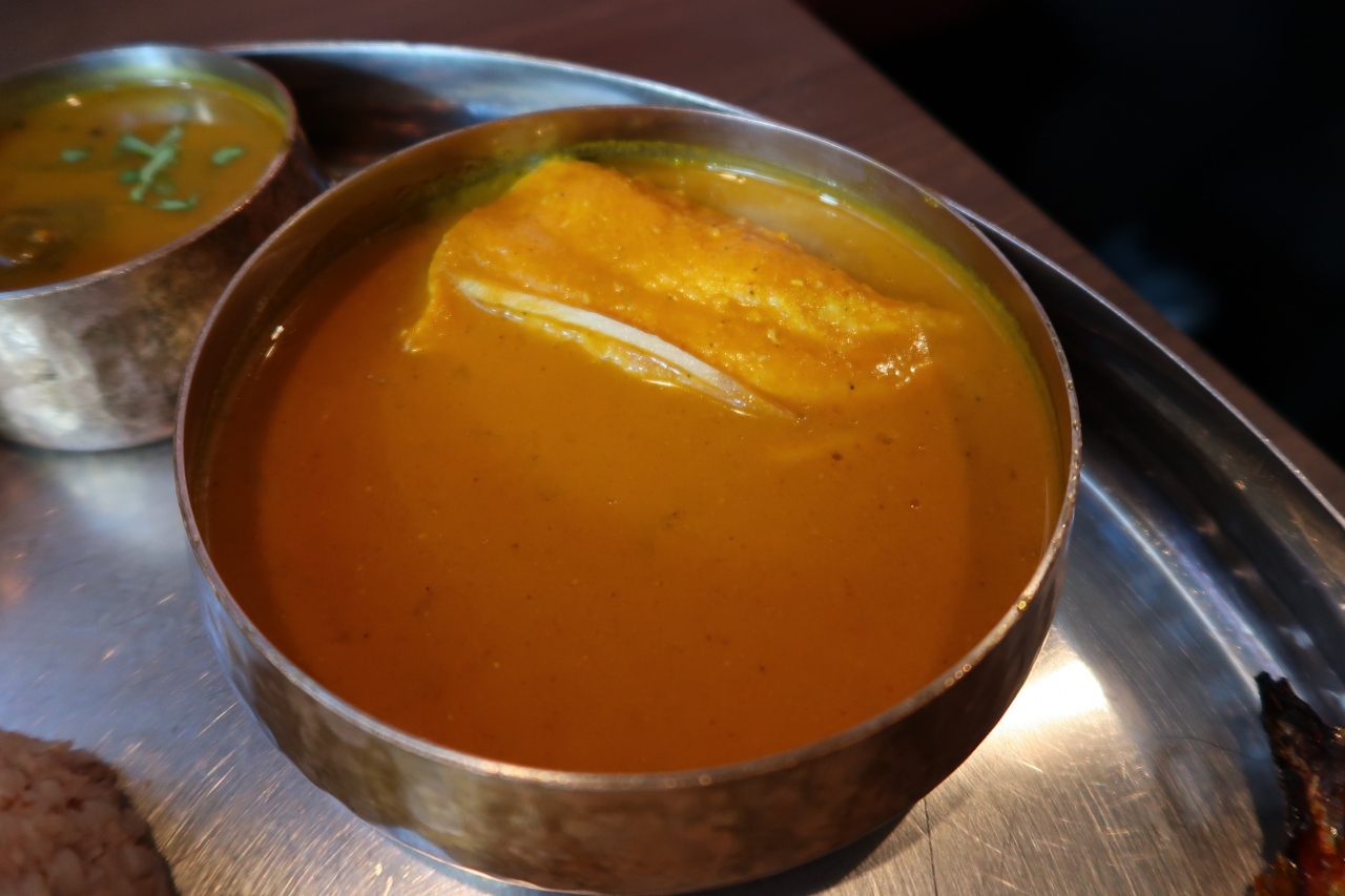 ランチで訪問。日本では珍しいマンガロール料理店でビブグルマンを獲得しているお店です。日曜日の11時30分着で先客3組ほど。テーブル席に案内されました。注文したのはフィッシュターリー(ウルドゥドーサ、ブラウンライス普通盛)とカジキマグロのビリヤニ。