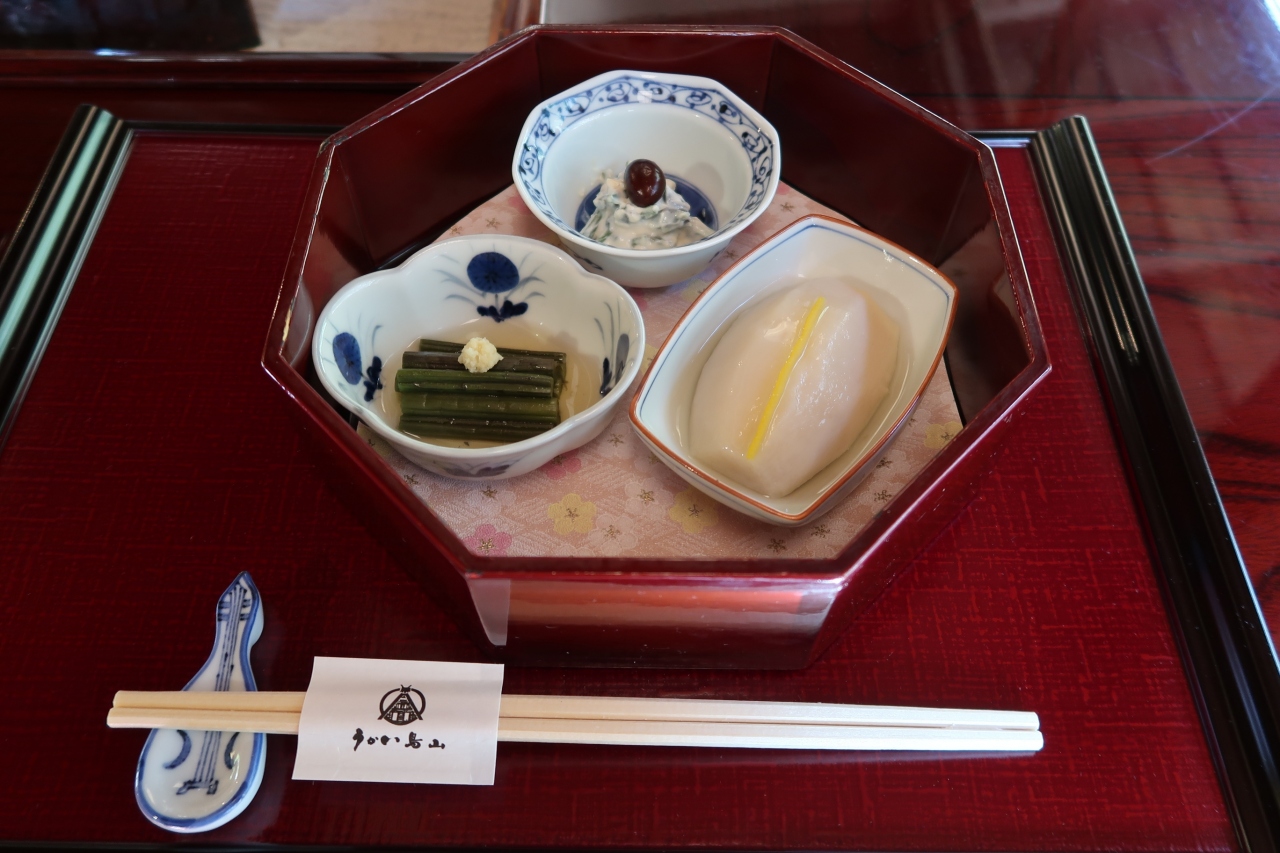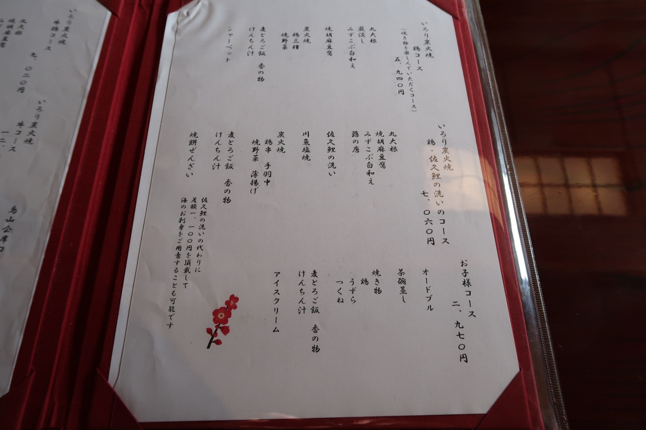 以前は自在焼コースで佐久鯉洗い、岩魚塩焼き、鶏肉は2串。それが年を追うごに串1本と手羽先だったり、つくね串の年もあったと記憶しています。そしてついに串ではなくなりましたが、こちらの食べる量も少なくなり丁度いい加減に。料理のクオリティという点では以前と変わらずでしたので十分満足できるものでした。- 旅行時期