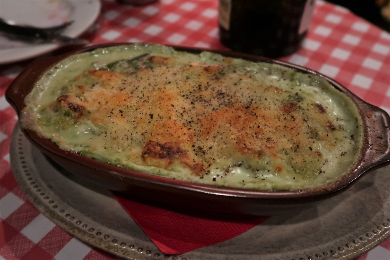 ●牡蠣と長葱のグラタン 青のりも入り磯の風味がいい。長葱はトロトロで甘く、プリップリの牡蠣と良く合います。