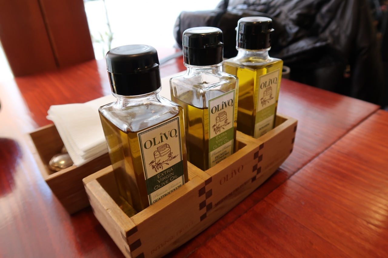 どちらもまずまずの美味しさですが、やはりこの店での売りである3種類あるオリーブオイル(ライト、ミディアム、インテンス)が抜群に美味しい。好みがあると思いますが、インテンスが一番風味があり好きでした。オリーブオイルを数種試せる店もあまりないと思われ、それだけでも楽しい店です。- 旅行時期