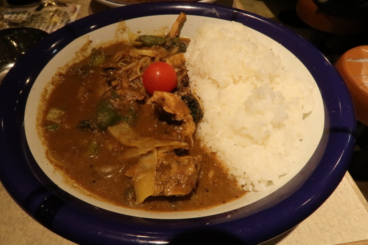 ●チキン+野菜カリー(辛さ10倍) 辛さ10倍でどうかなと思いましたが、口に入れた瞬間は辛味をあまり感じませんでしたが徐々にじんわりと辛みが追いかけてきて、辛口という意味ではちょうどいい。鶏肉は大きなものが2切れ。食べ応えも十分。ご飯の盛りも良く、普通盛でも十分でした。